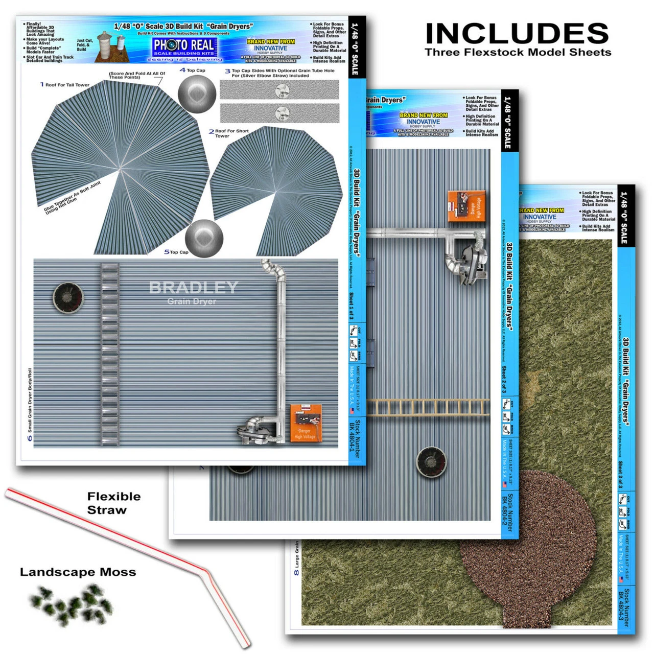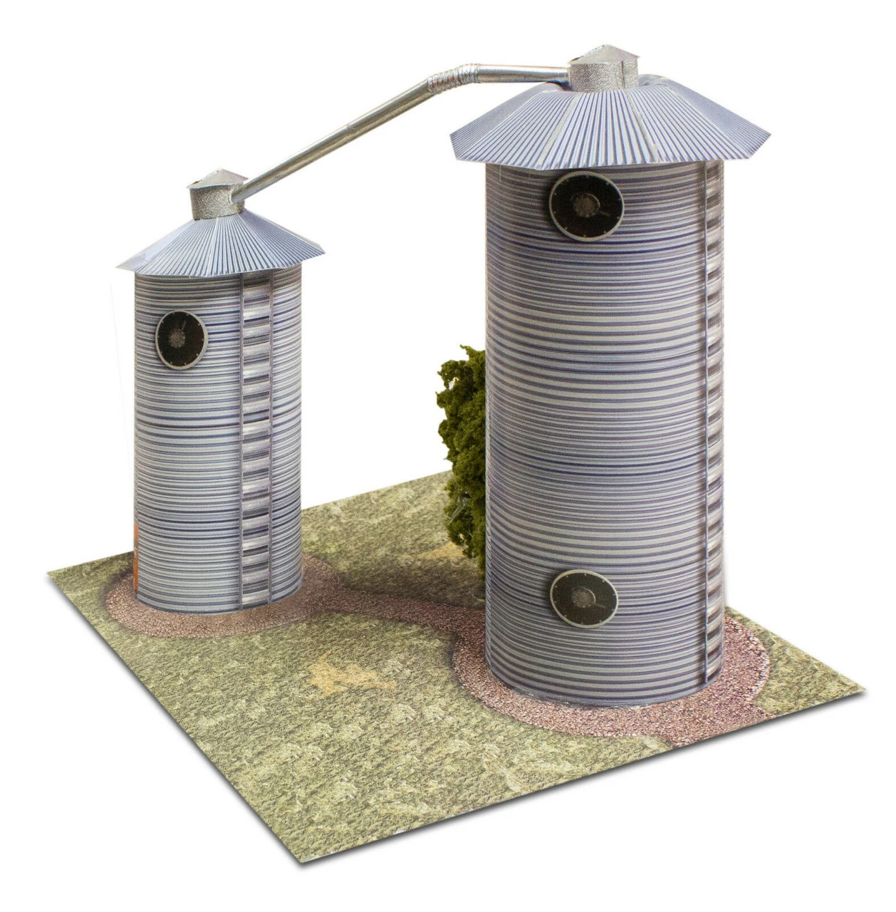 Grain Dryers Photo Real Scale Building Kit is a complete scale model set that comes ready to trim and assemble. This kit includes two full grain dryers.