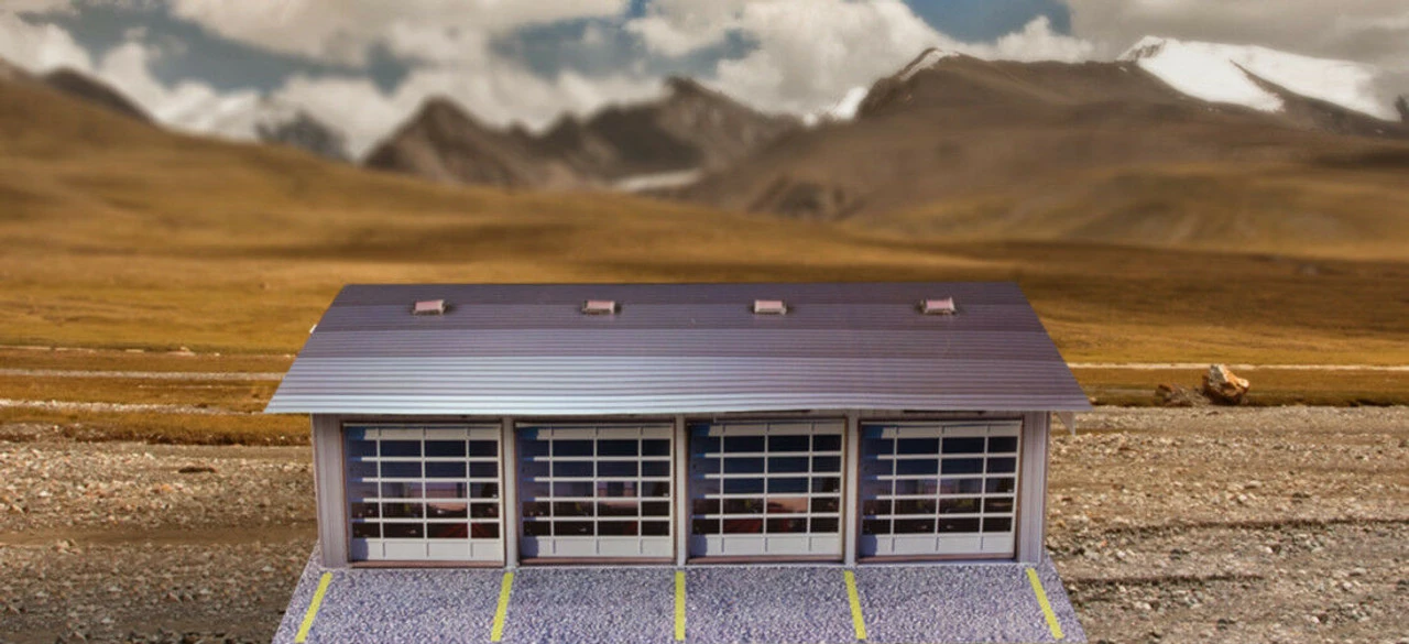4 Stall Pit Garage Photo Real Scale Building Kit is a complete scale model set that comes ready to trim and assemble.