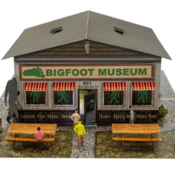 This sturdy Bigfoot Museum Miniature build model is great for train layouts and scenery, slot car tracks or simply a desktop or shelf conversation starter. Bigfoot memorabilia collectors and Sasquatch enthusiasts and Bigfoot researchers will love this detailed Bigfoot museum model. A great roadside attraction model that will bring back memories of other roadside attractions. Makes a great gift.