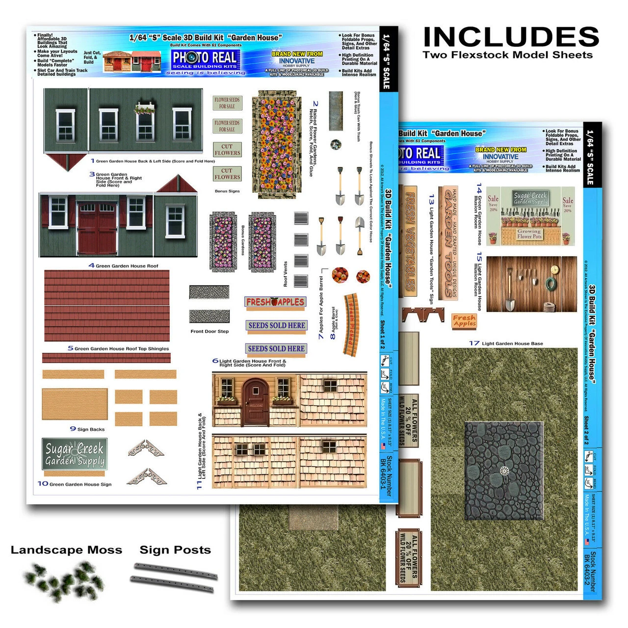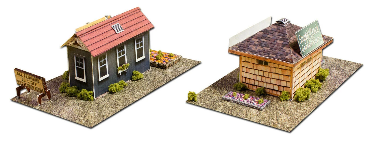 “Garden Houses” Photo Real Scale Building Kit is a complete scale model set that comes ready to trim and assemble.
