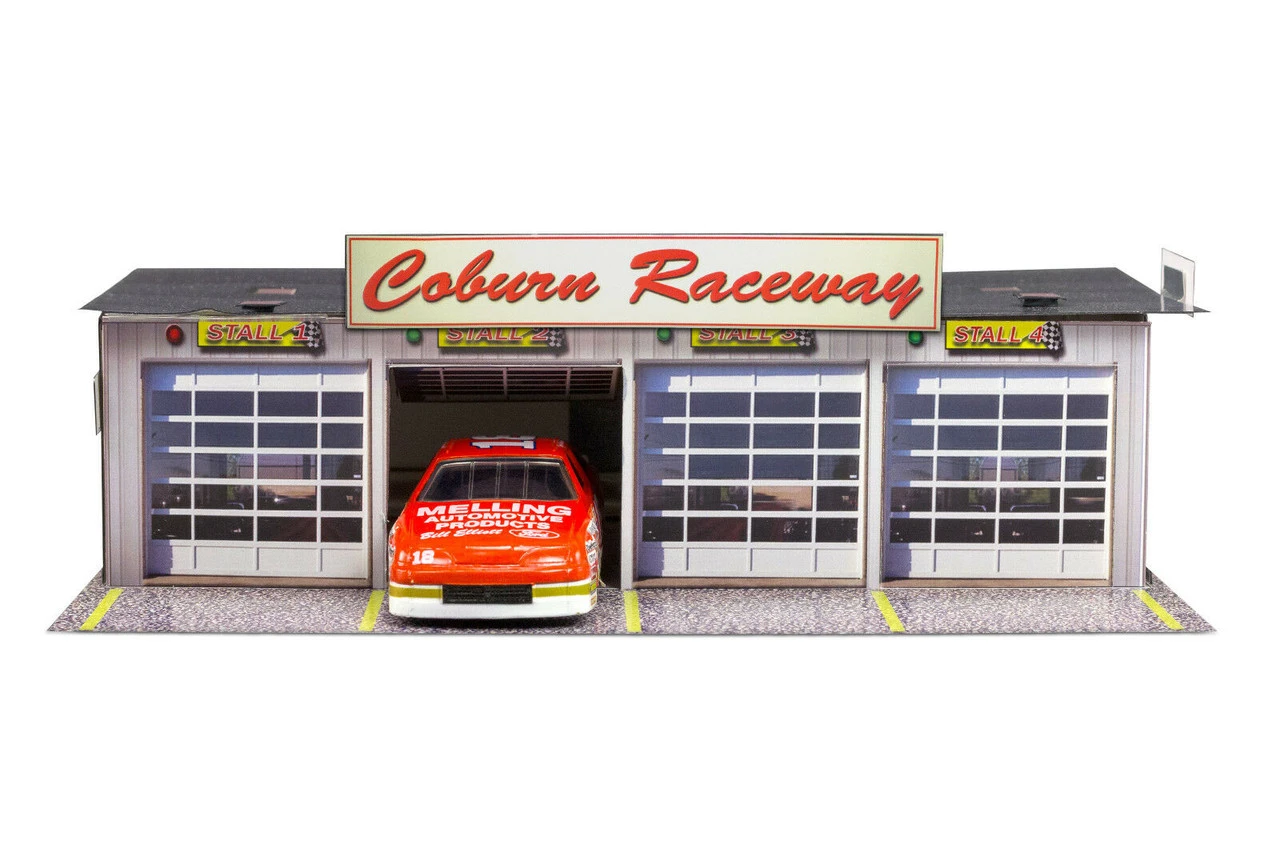 “4 Stall Pit Garage” Photo Real Scale Building Kit is a complete scale model set that comes ready to trim and assemble.