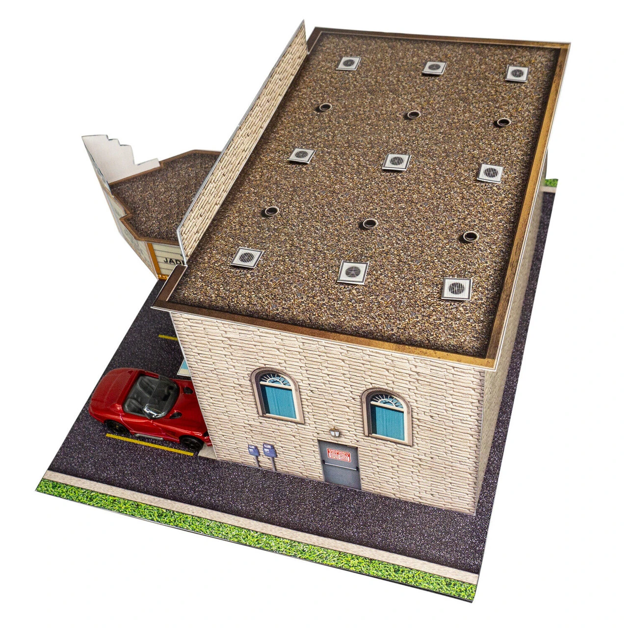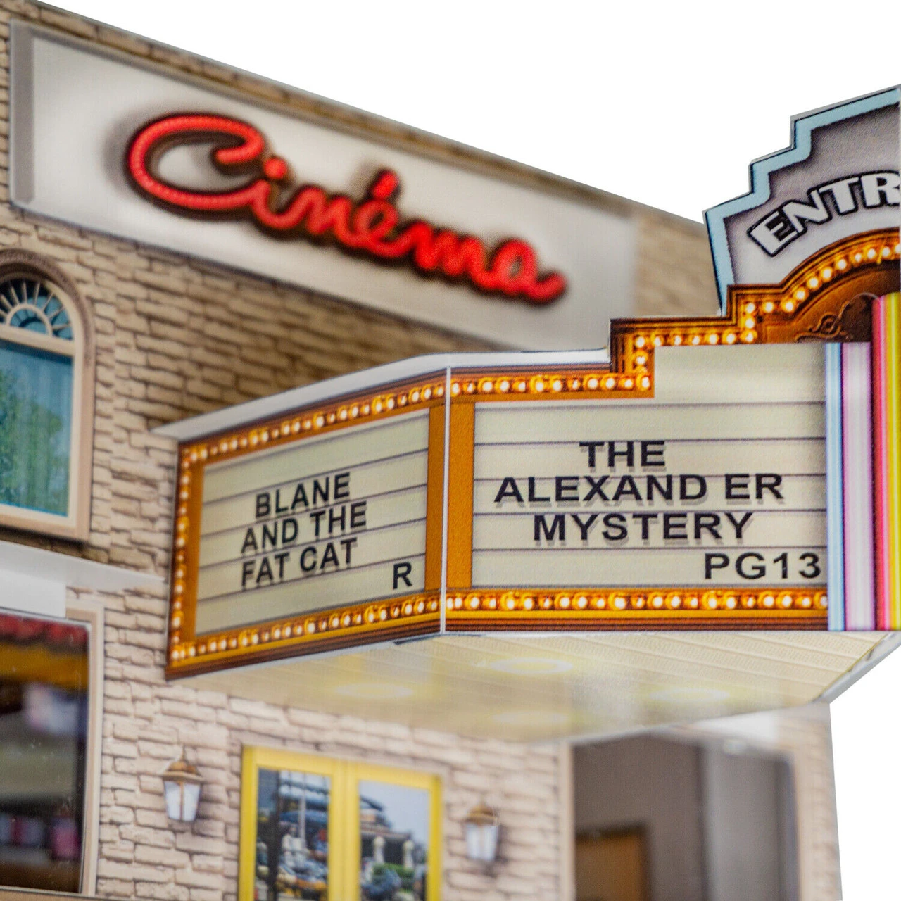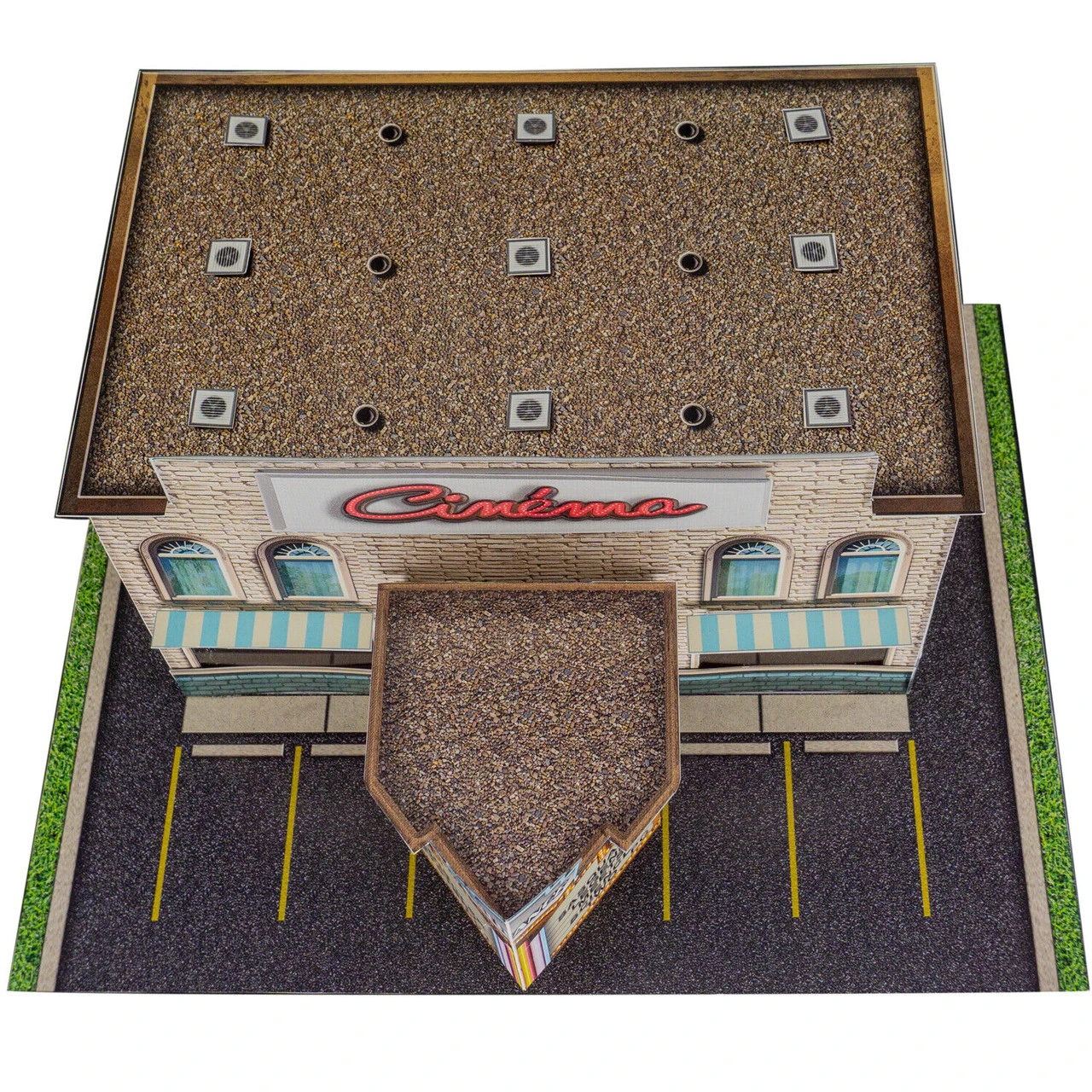 “Cinema Building” Photo Real Scale Building Kit is a complete scale model set that comes ready to trim and assemble.