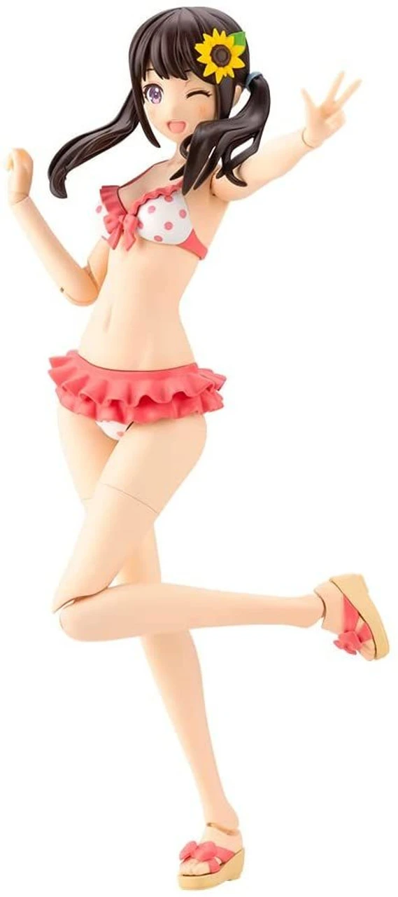The swimsuit shoulder straps, pink polka-dot pattern, and sandals are all pre-painted! The polka-dot pattern is pre-painted even on the body for sitting while hugging the knees, so just assembling the model kit will result in a product close to the character model for users to enjoy!