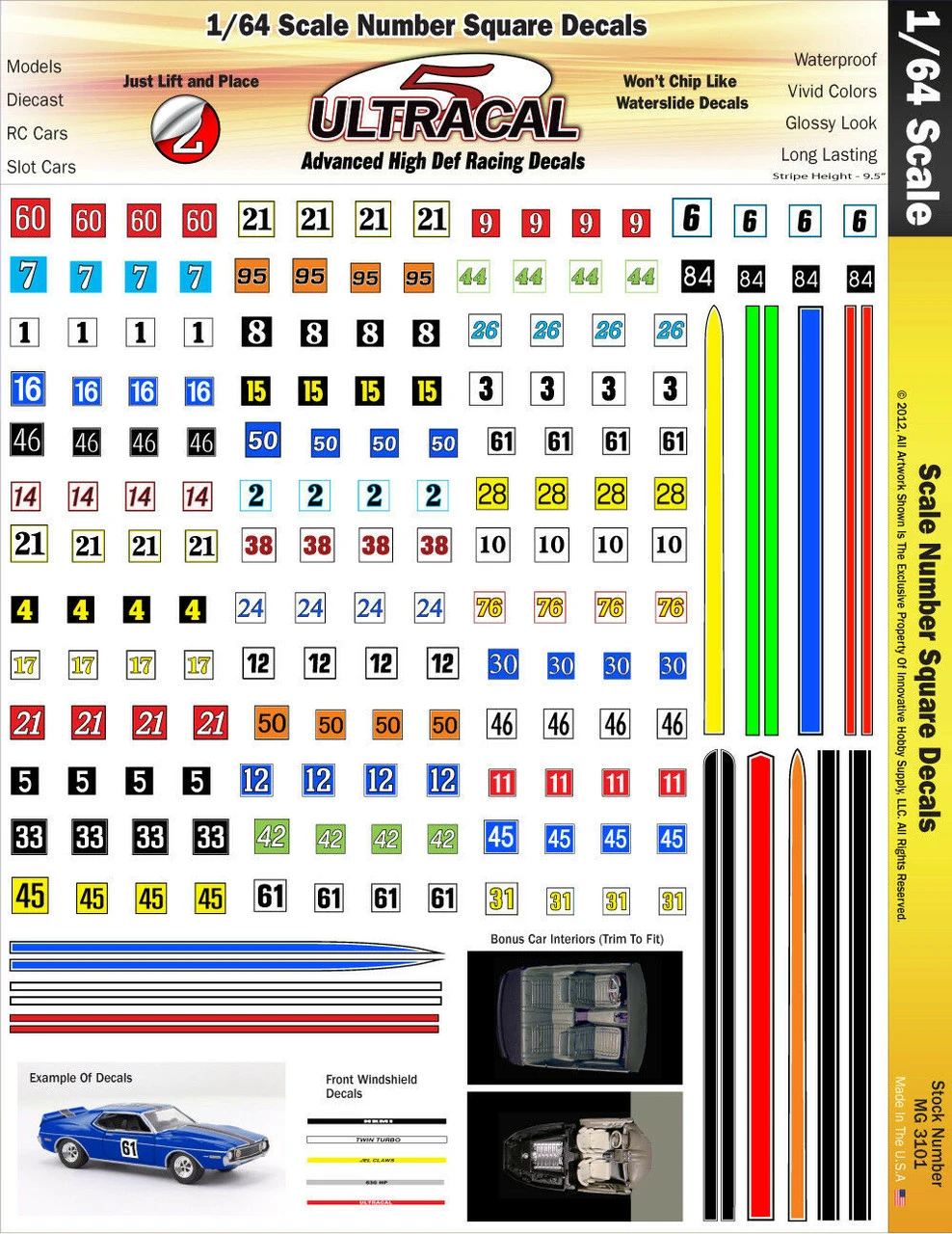 Made from highly precise equipment to achieve maximum detail and produced with a new micro-thin, space-age poly material using high-definition graphics. All of our Ultracal decals are bright, glossy, precision pre-cut, and fully opaque to achieve that high definition finish.