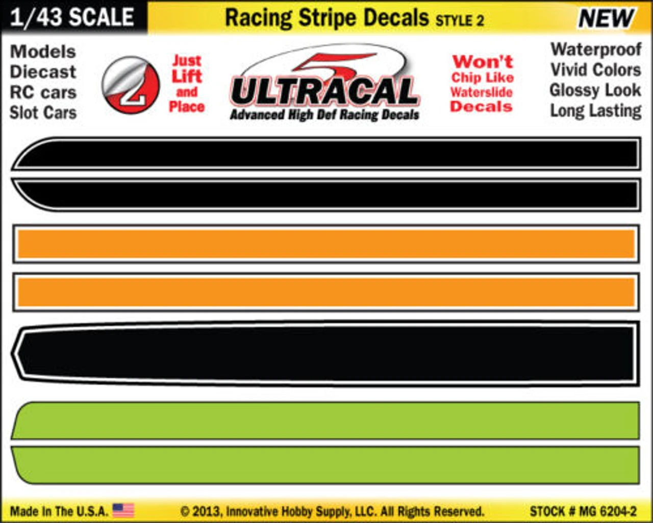 MG 6204-2 UltraCal Racing Stripe Decals Style 2 1:43 Scale -Innovative Hobby Supply shop Made In USA Cropped 02MG 6204-2 UltraCal Racing Stripe Decals Style 2 1:43 Scale -Innovative Hobby Supply shop UltraCal App