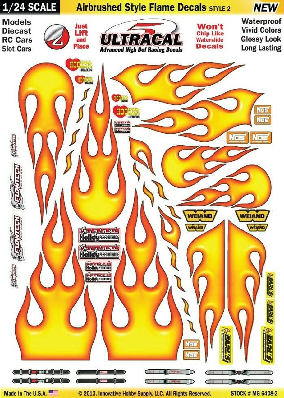 MG 6408-2 Ultracal Airbrushed Style Flame Style 2 Decals 1:24 Scale -Innovative Hobby Supply shop UltraCal promo piece V5 General