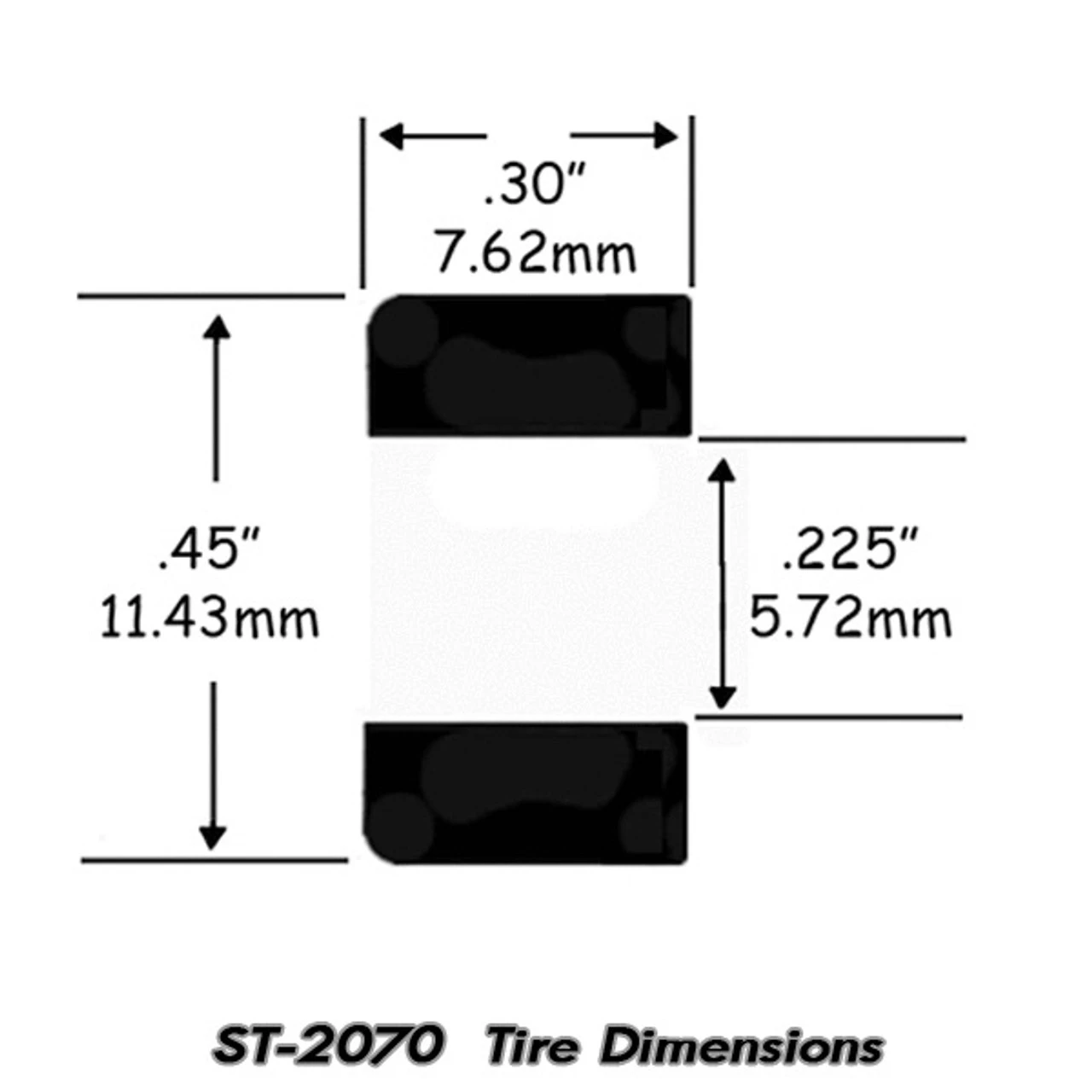 | Tire Height | .45″ | 11.43 mm |